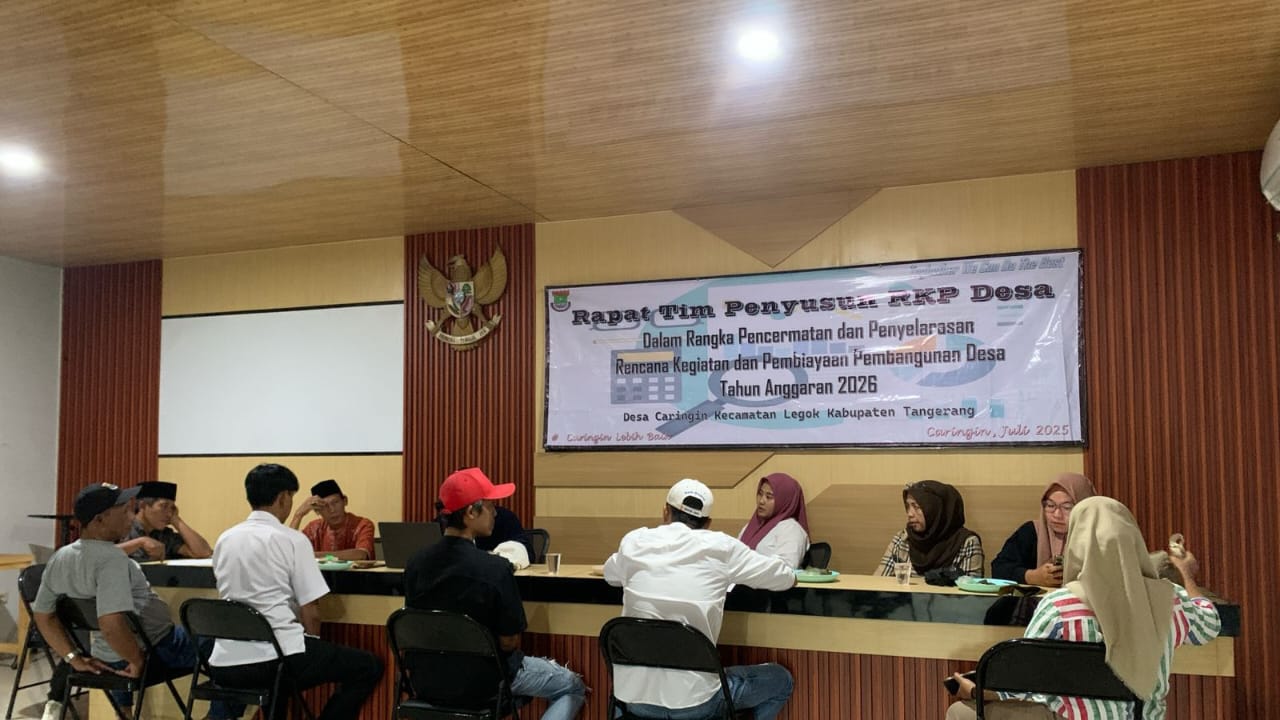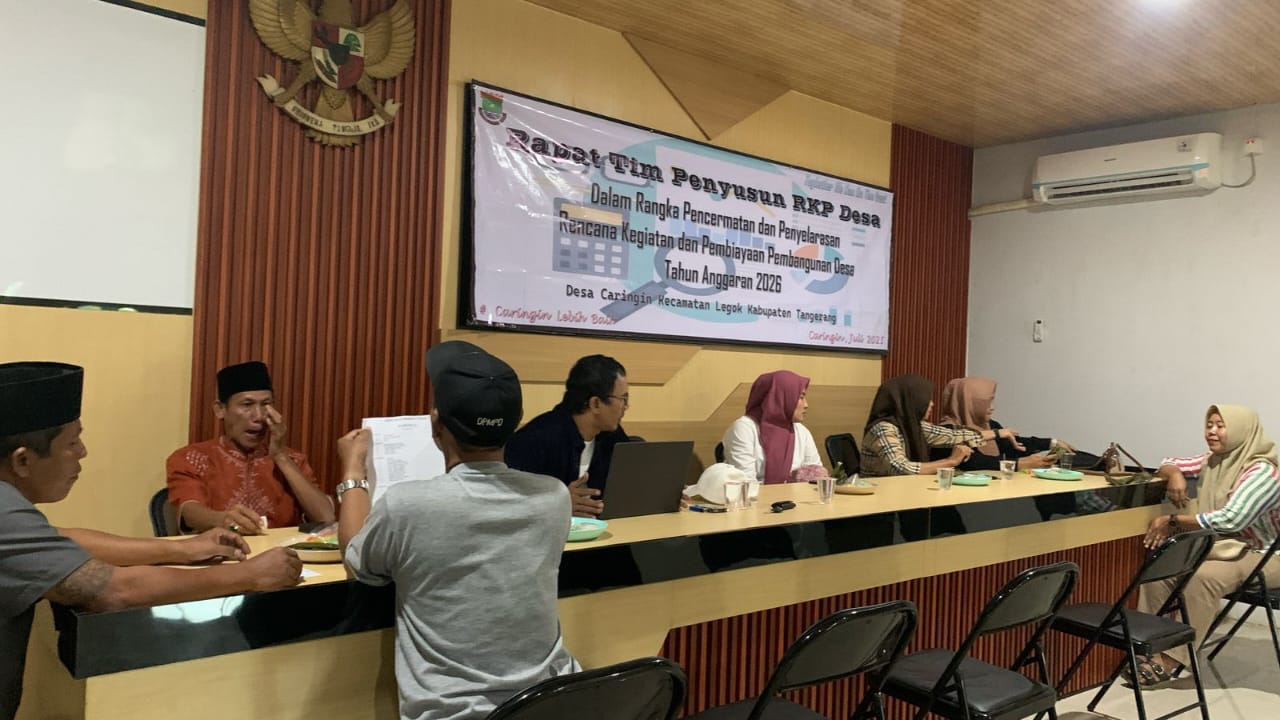 Pemerintah Desa Caringin mengadakan Rapat Tim Penyusun RKP Desa dalam Rangka Pencermatan dan Penyelarasan Rencana Kegiatan Pembiayaan Pembangunan Desa Tahun Anggaran 2026 yang bertempat di Aula Kantor Desa Caringin. Jum'at, 11 Juli 2025.